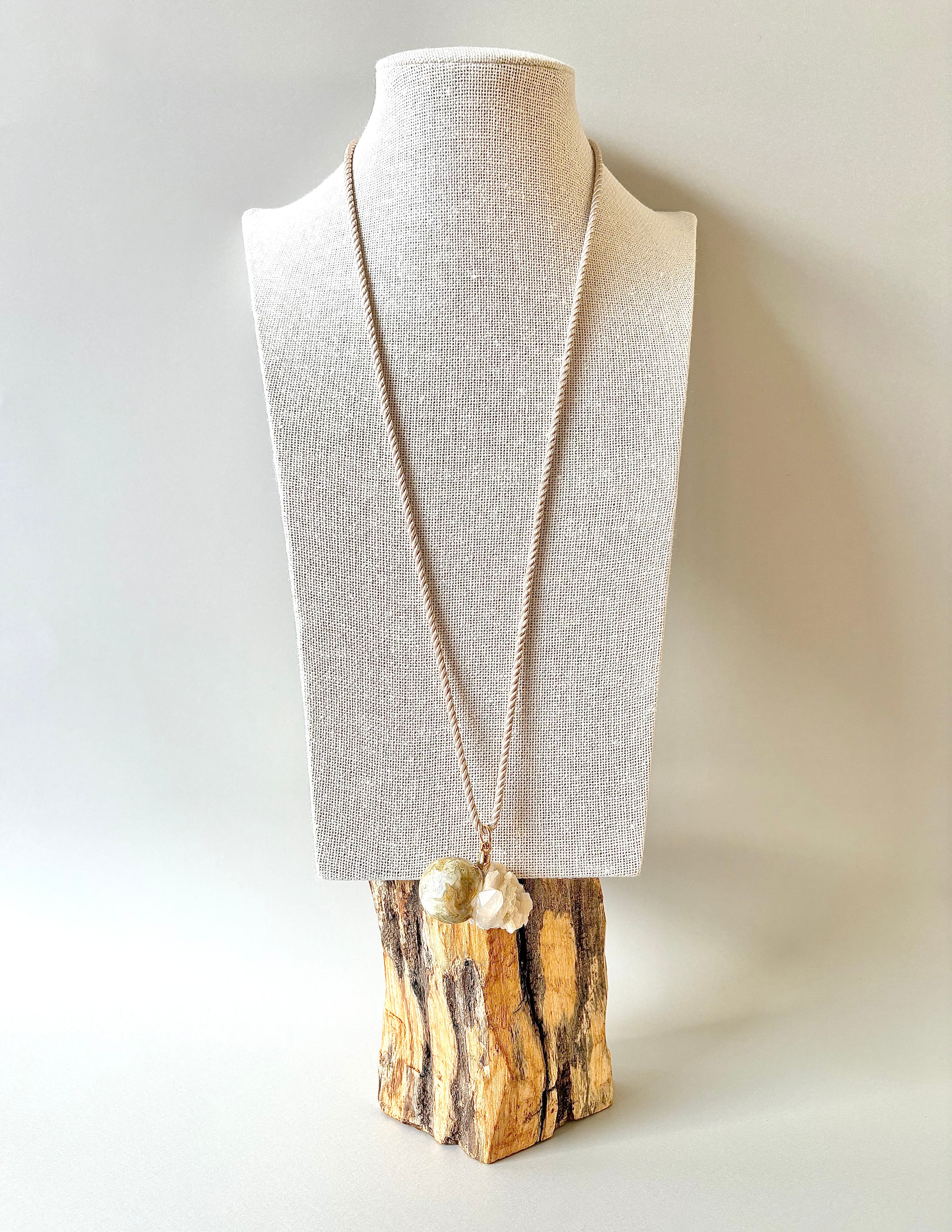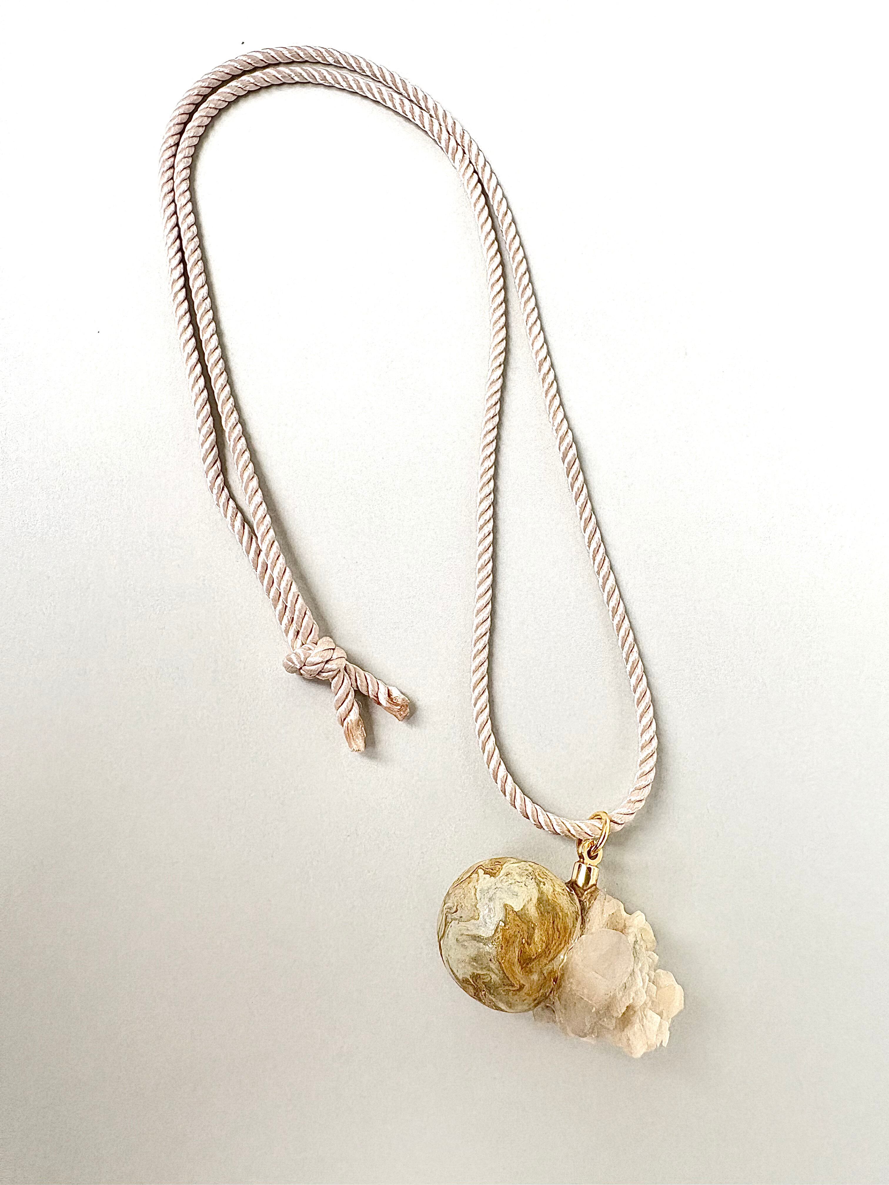 不定形な鉱石と、滑らかな球体を組み合わせたネックレス。
