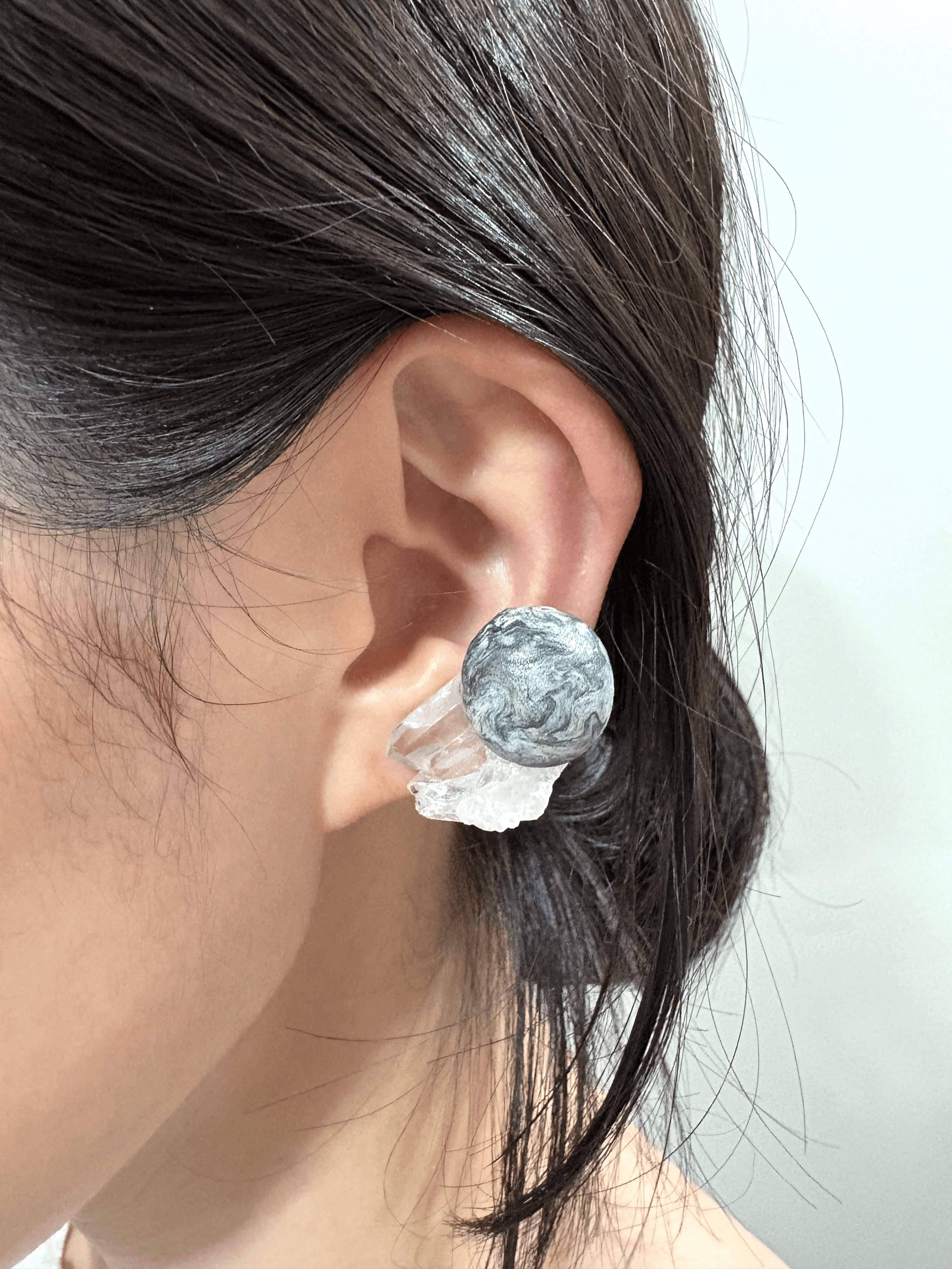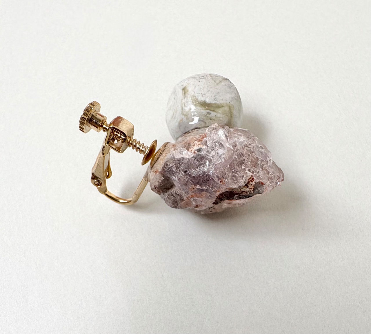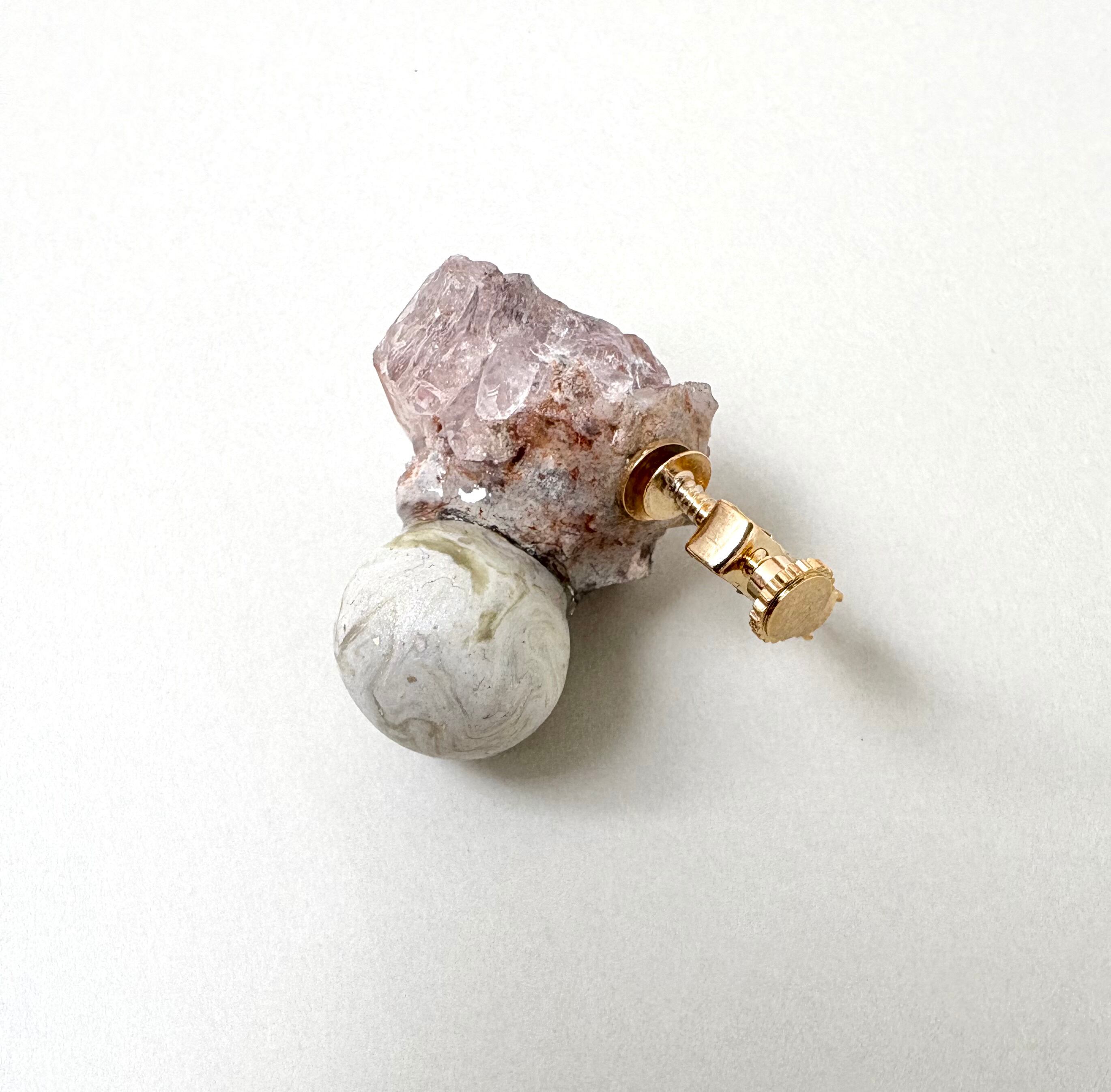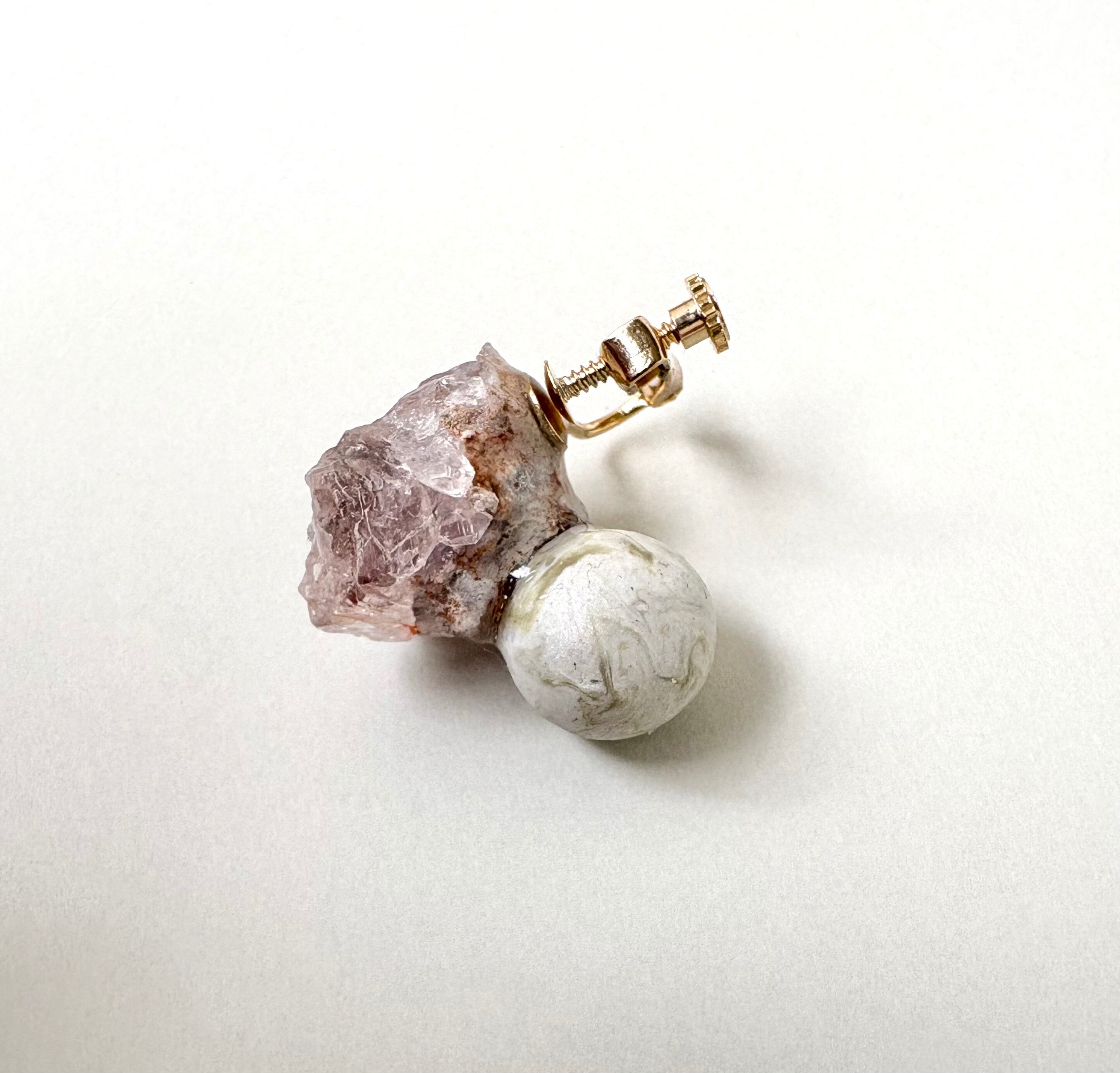 不定形な鉱石と、滑らかな球体を組み合わせたイヤリング。