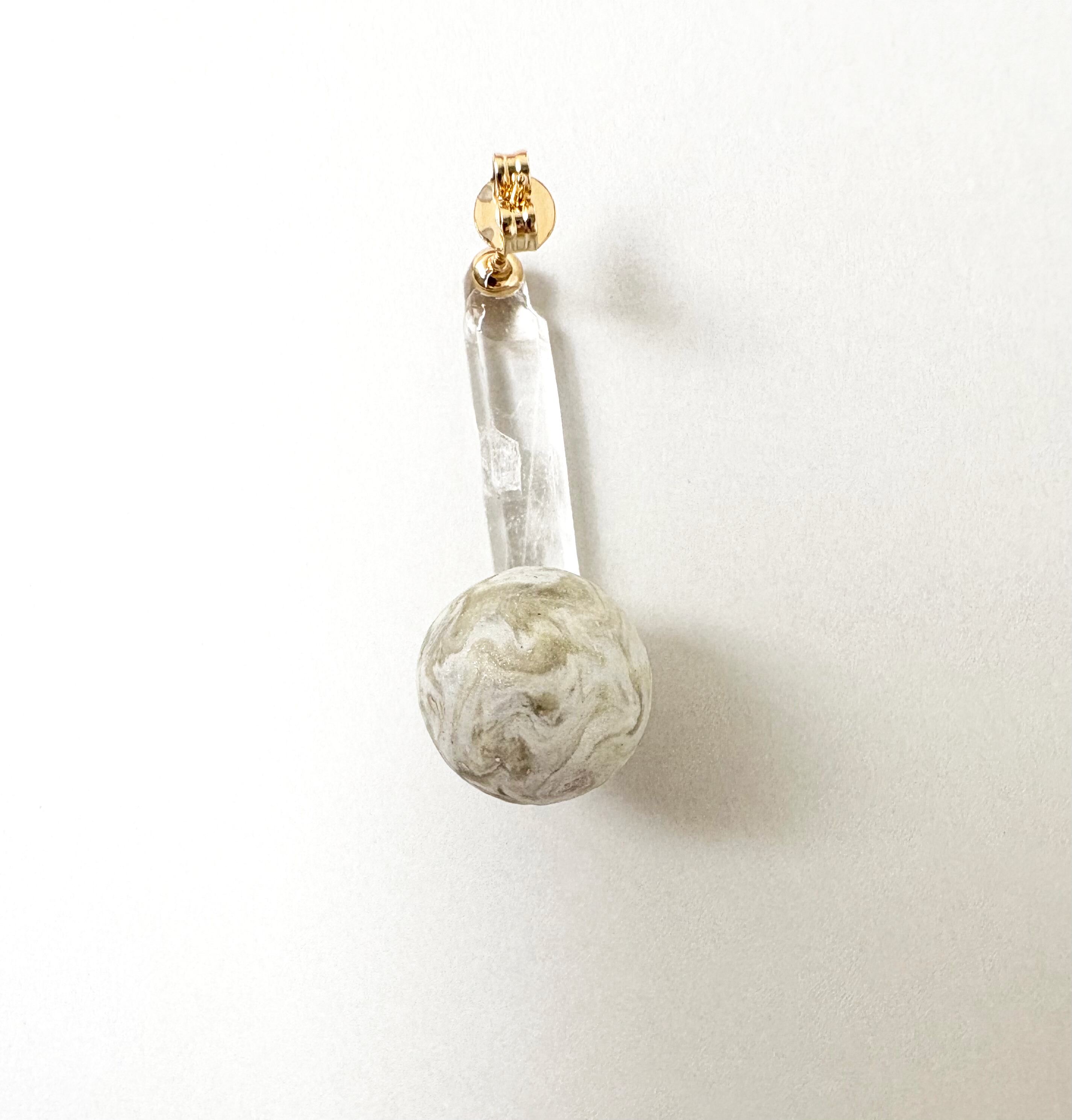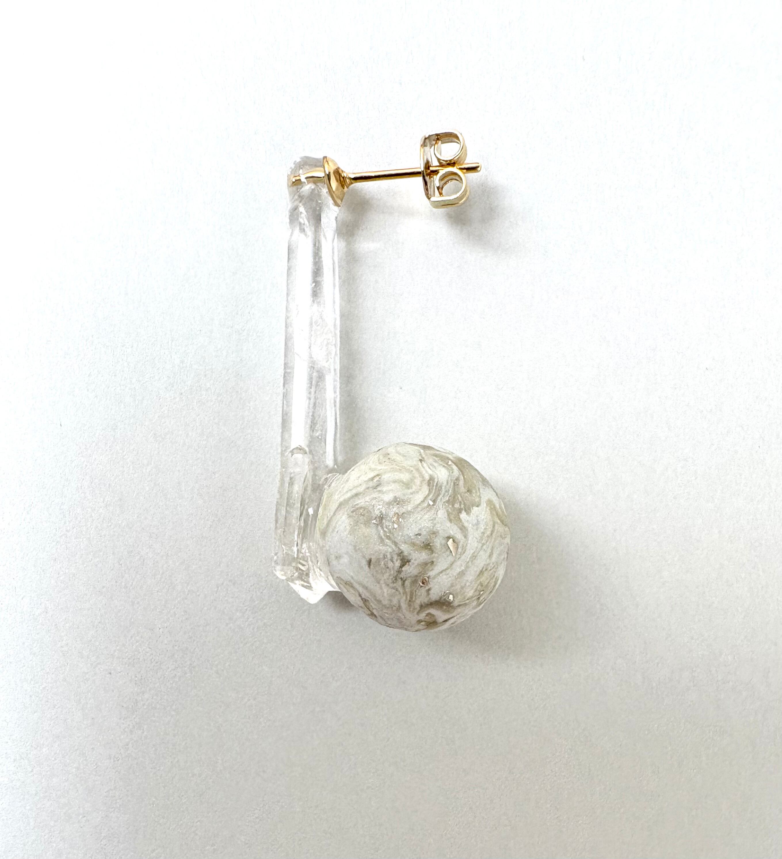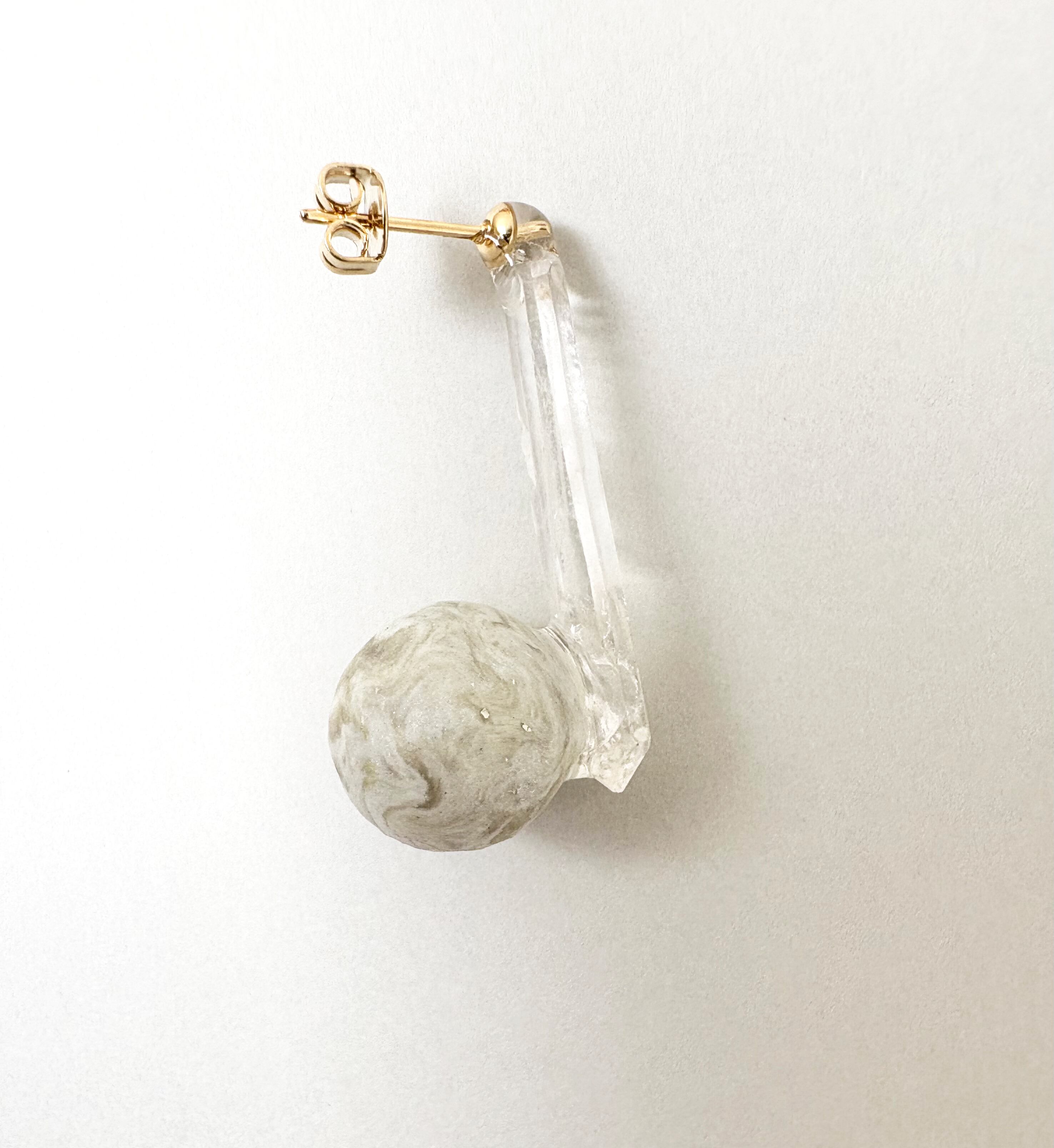 不定形な鉱石と、滑らかな球体を組み合わせたピアス。