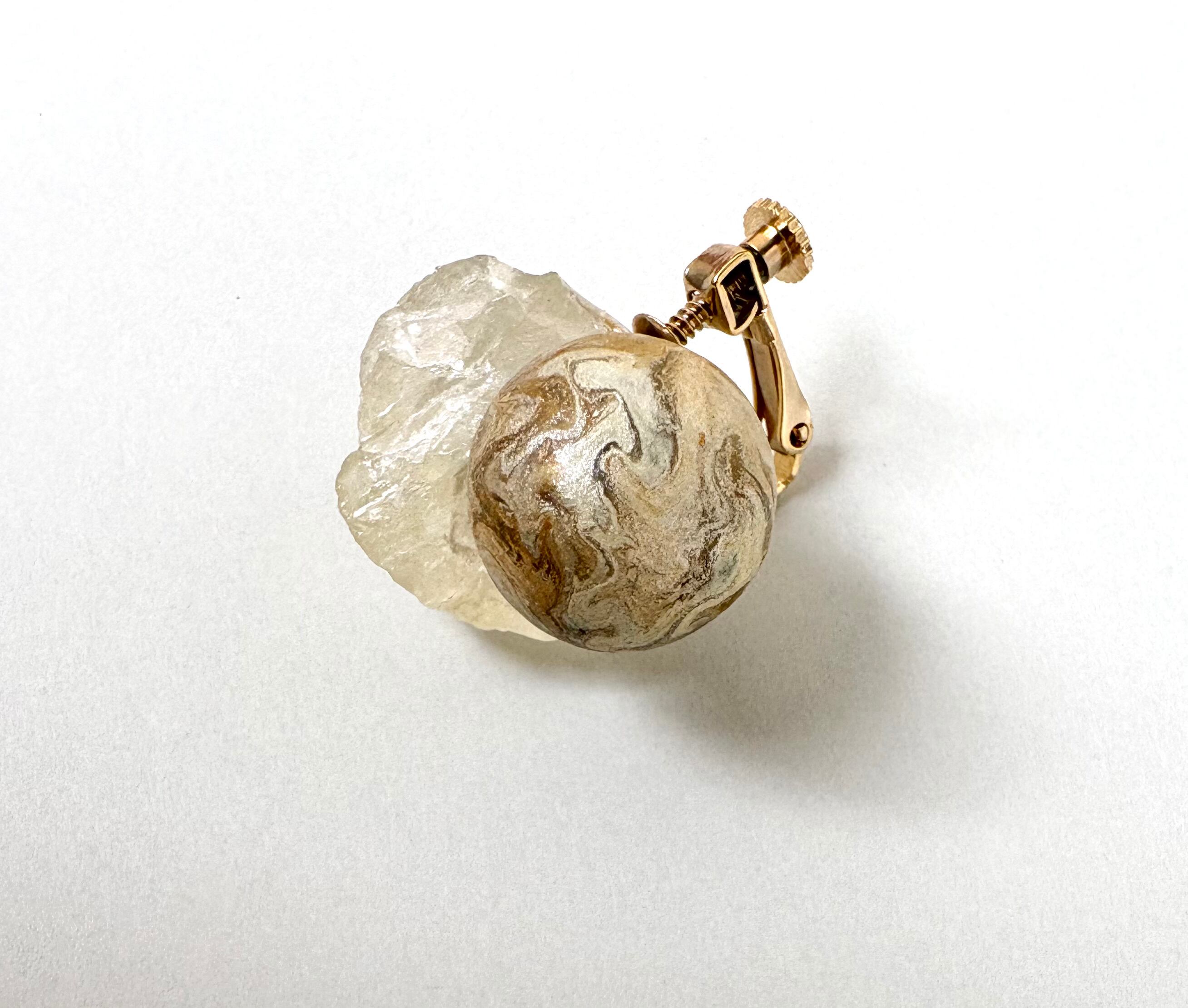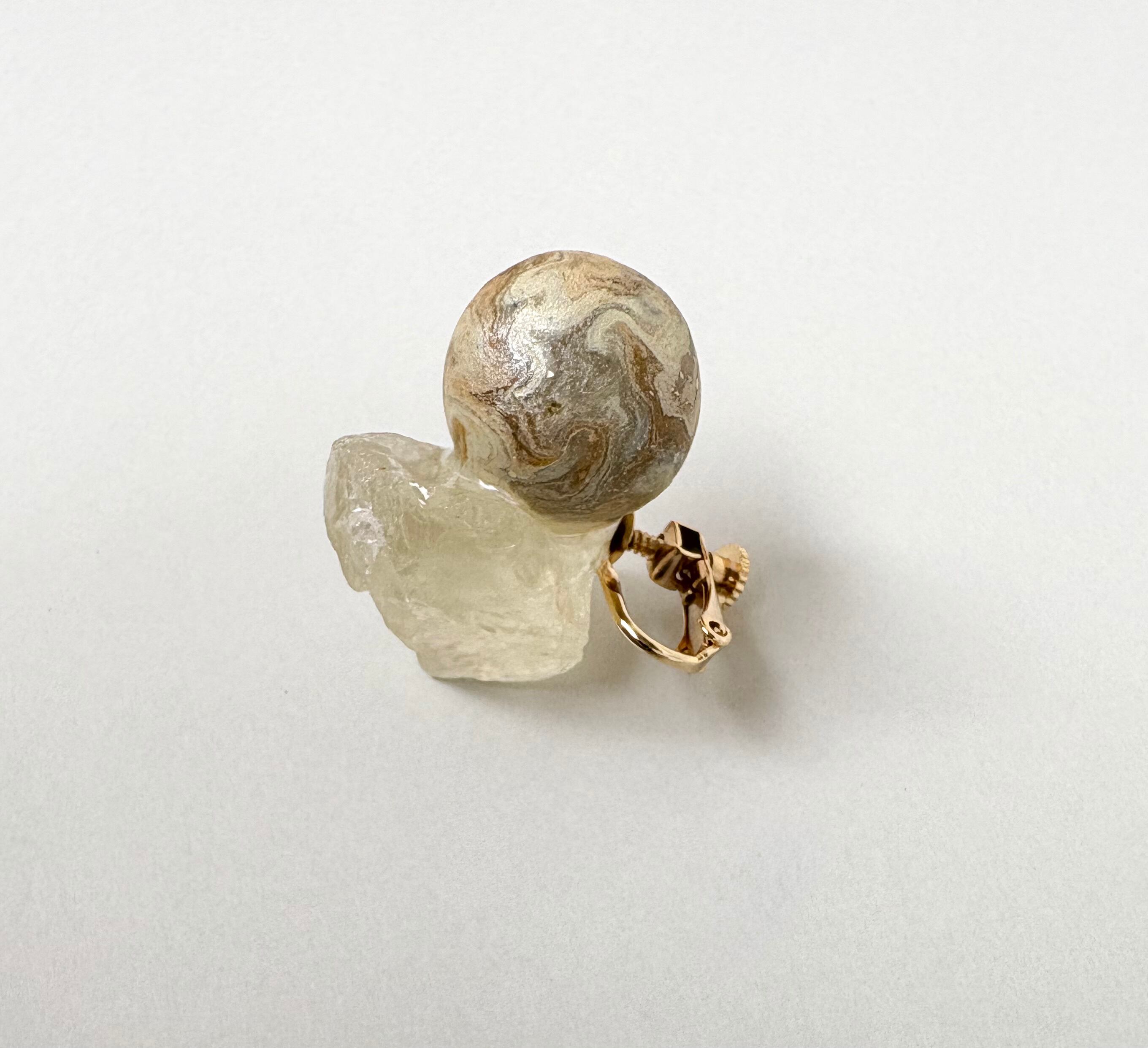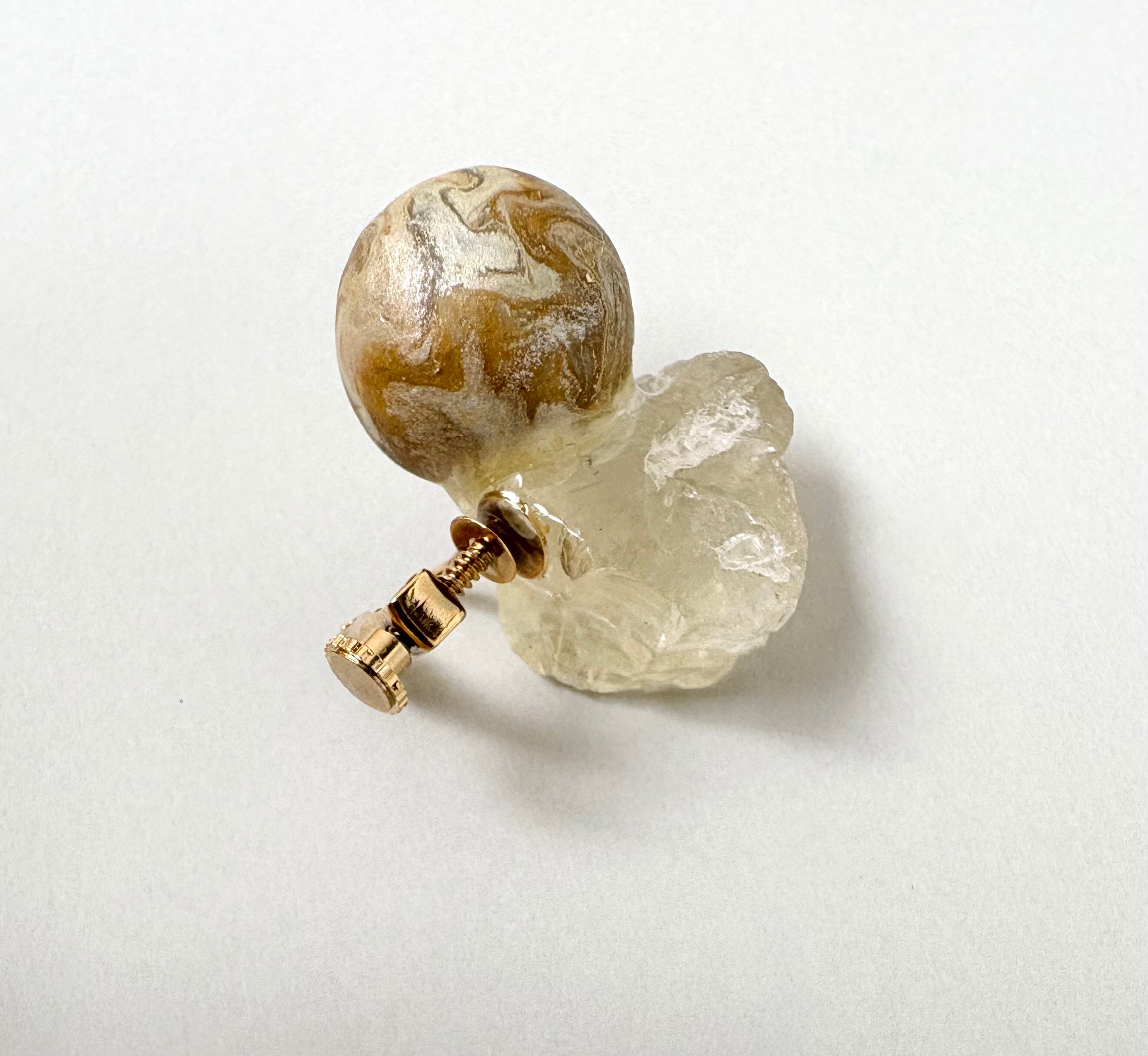 不定形な鉱石と、滑らかな球体を組み合わせたイヤリング。