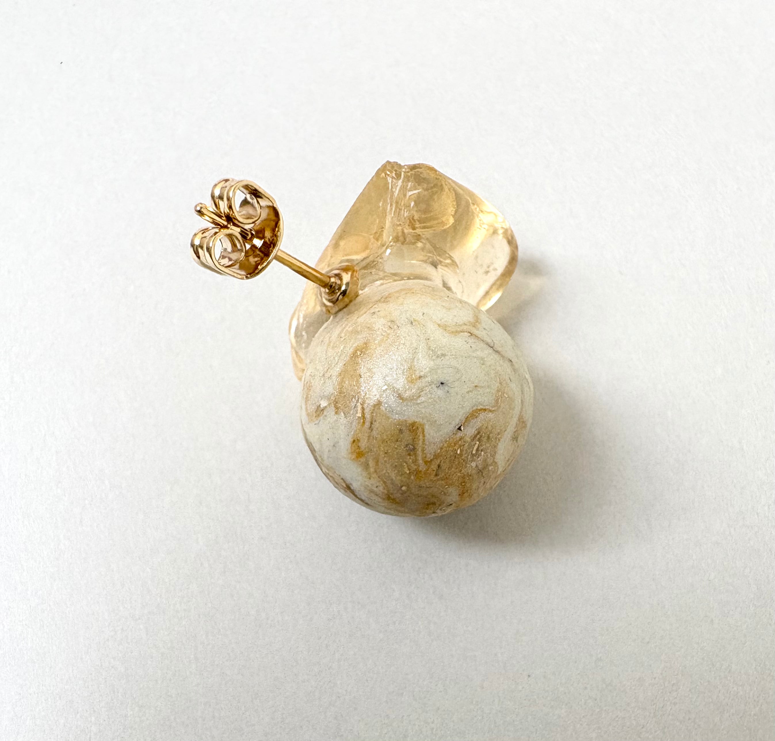 不定形な鉱石と、滑らかな球体を組み合わせたピアス。